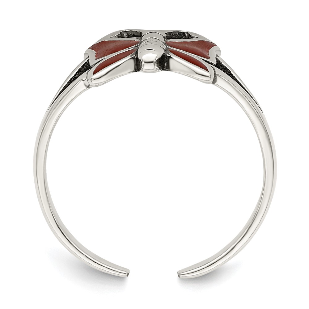 Sterling Silver Antiqued Red Enameled Butterfly Toe Ring