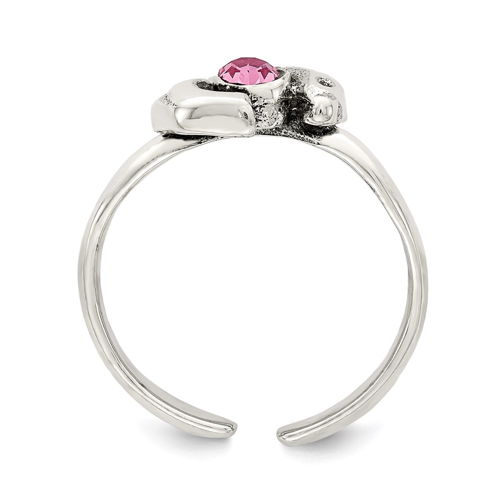 Sterling Silver Antiqued Pink CZ Dolphin Toe Ring