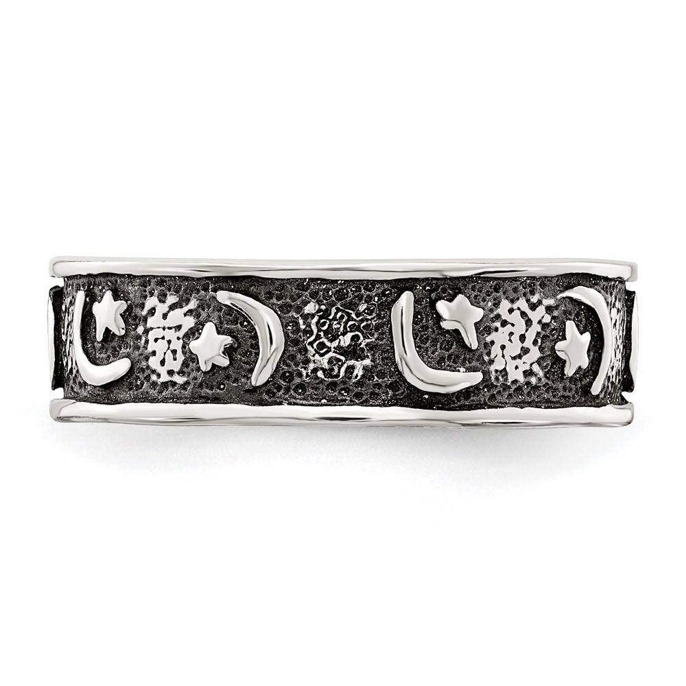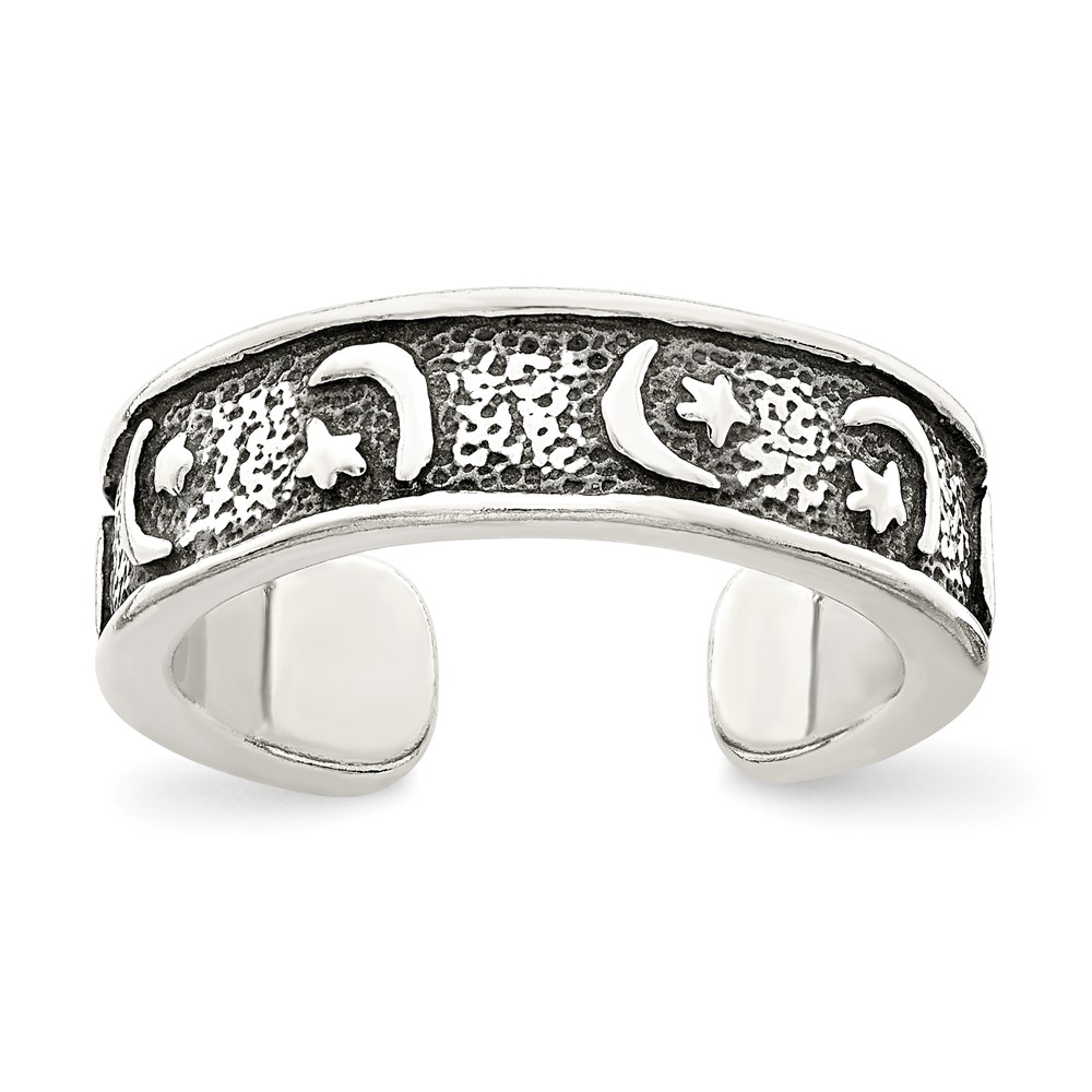 Sterling Silver Antiqued Moon & Star Toe Ring