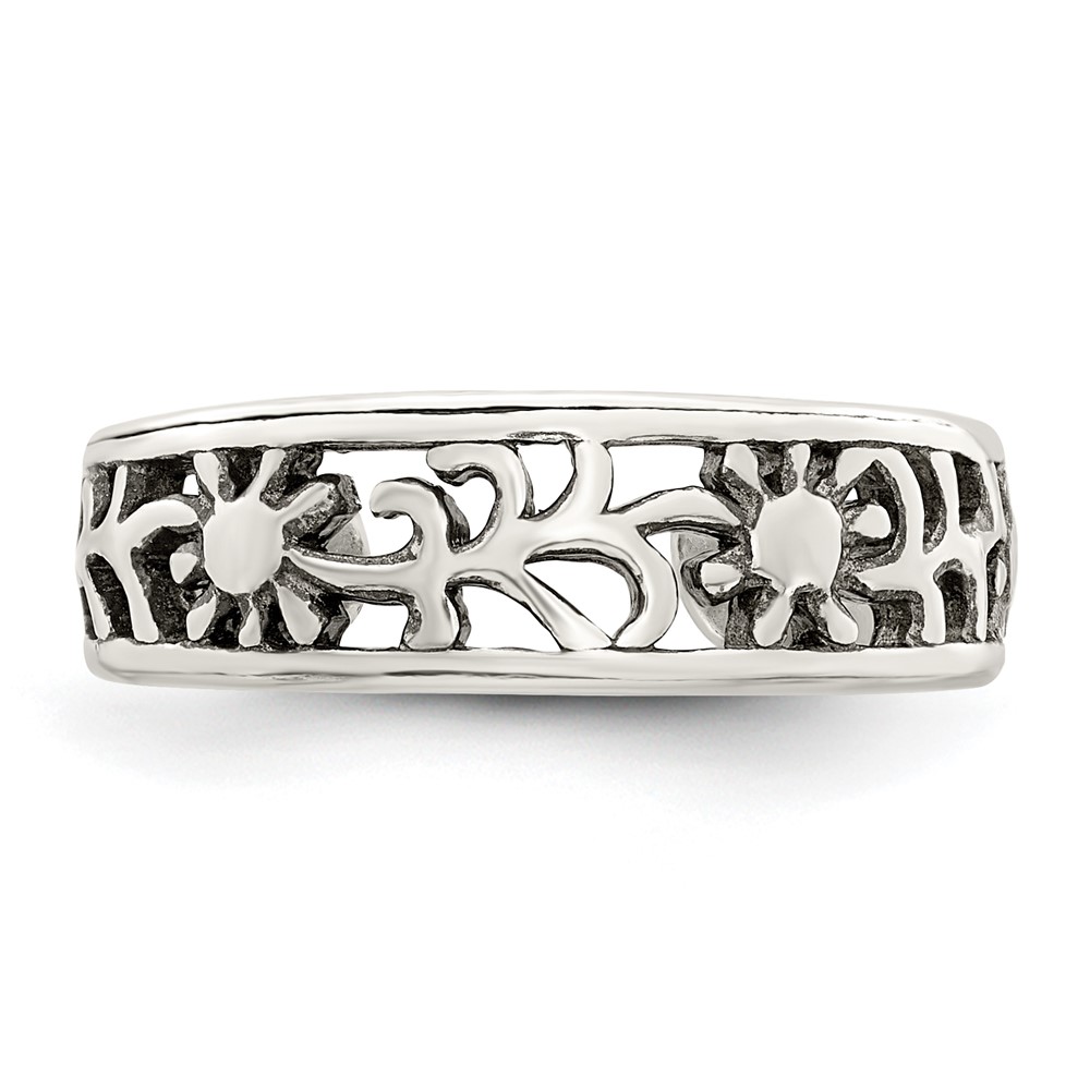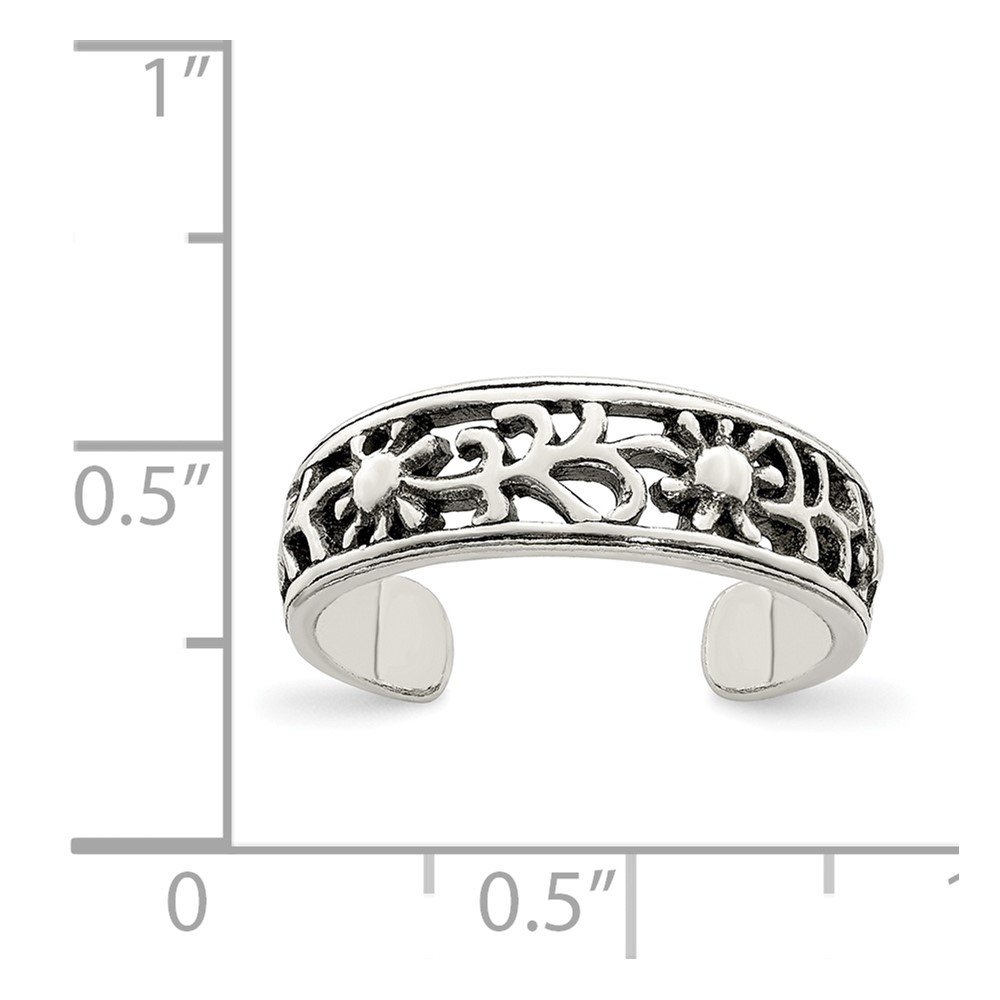 Sterling Silver Antiqued Floral Toe Ring