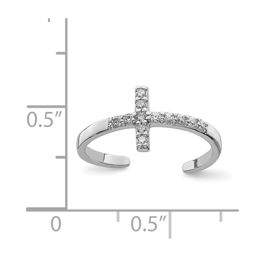 Sterling Silver Rhodium-plated CZ Cross Toe Ring