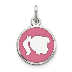 Sterling Silver Rhod-plate Pink Enamel Left Facing Girl Head Disc Charm