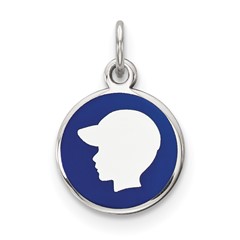 Sterling Silver Rhod-plate Blue Enamel Left Facing Boy Head Disc Charm
