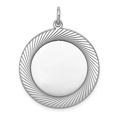 Sterling Silver Rhod-plated Eng. Round Polish Front/Satin Back Disc Charm