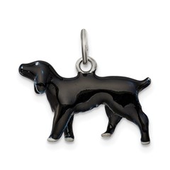 Sterling Silver Rhodium-plated Enameled Puppy with Lobster Clasp Charm