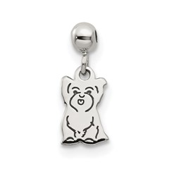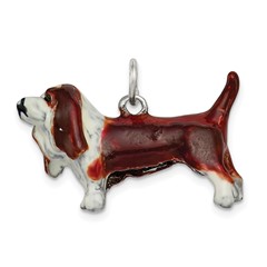 SS RH 3-D Polished and Enameled Dog with Lobster Clasp Charm