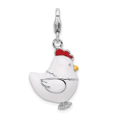 Sterling Silver RH and Enamel Chicken with Lobster Clasp Charm