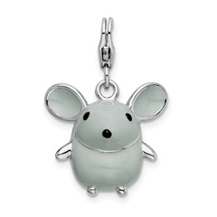 Sterling Silver RH 3-D Enameled Grey Mouse with Lobster Clasp Charm