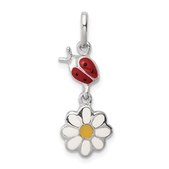 Sterling Silver Rhodium Plated Child Enamel Ladybug/Daisy Pendant