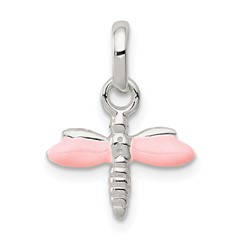 Sterling Silver Children's Pink Enameled Dragonfly Pendant