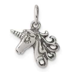 SS RH 3-D Enameled Unicorn Head with Lobster Clasp Charm