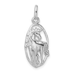 Sterling Silver Rhodium-plated Childs Enameled Unicorn Pendant