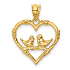 14K Heart with Doves and Hearts D/C Textured Pendant