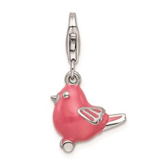 Sterling Silver RH And Pink Enameled Bird Charm