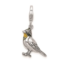 Sterling Silver Rhodium-plated 3-D Enameled Bird with Lobster Clasp Charm