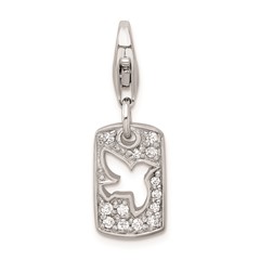 SS RH CZ Cut-out Dove/Peace Clip-on with Lobster Clasp Charm