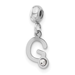 Sterling Silver Rhodium-plated MeMi Letter G with Swarovski Crystal Charm