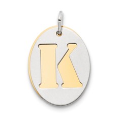 Sterling Silver GP Initial K Double Plate Oval Charm