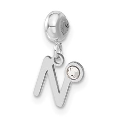 Sterling Silver RH CZ Letter N with Lobster Clasp Charm