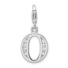 Sterling Silver RH CZ Letter O with Lobster Clasp Charm