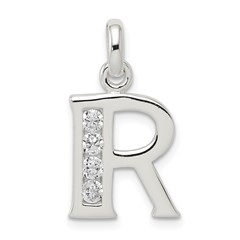 Sterling Silver White CZ Initial R Pendant