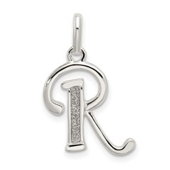 Sterling Silver Rhodium-plated Large Script Initial R Charm