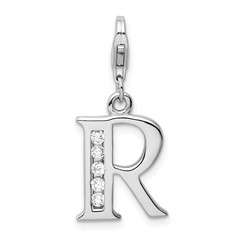 Sterling Silver RH CZ Letter R with Lobster Clasp Charm