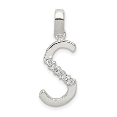 Sterling Silver Rhodium-plated Large Script Initial S Charm