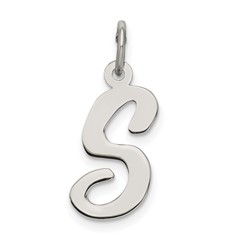 Sterling Silver Rhodium-plated Medium Script Initial S Charm