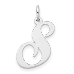 Sterling Silver Rhodium-plated Large Fancy Script Initial S Charm