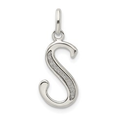 Sterling Silver Polished Glitter Enamel Letter S Pendant