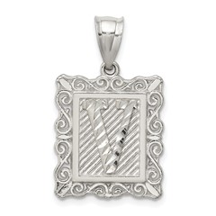 Sterling Silver Rhodium-plated Brocaded Initial V Charm