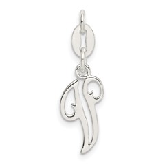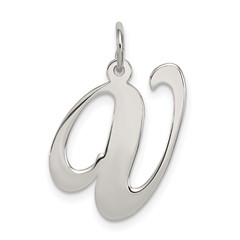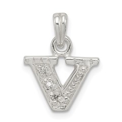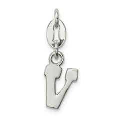 Sterling Silver Rhodium-plated Small Fancy Script Initial V Charm