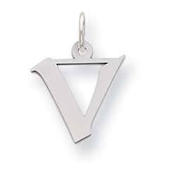 Sterling Silver Rhodium-plated Medium Artisan Block Initial V Charm