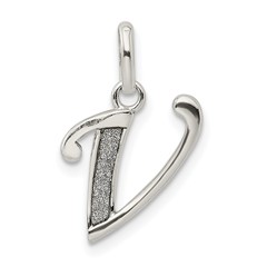 Sterling Silver Polished Glitter Enamel Letter V Pendant