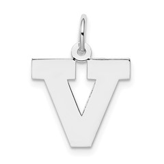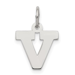 Sterling Silver Rhodium-plated Medium Block Initial V Charm