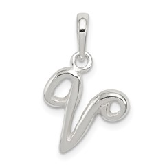 Sterling Silver Rhodium-plated Medium Script Initial V Charm