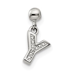 Sterling Silver RH CZ Letter Y with Lobster Clasp Charm