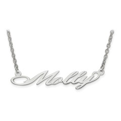 Sterling Silver Rhodium-plated Laser Polished Nameplate with Chain