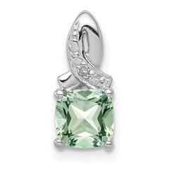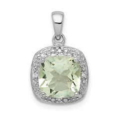 Sterling Silver Rhodium Green Quartz and Diamond Pendant