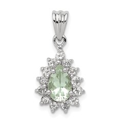 Sterling Silver Rhodium-plated Green Quartz Diamond Pendant