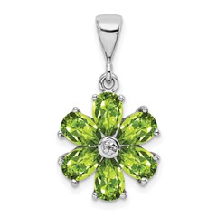 Sterling Silver Rhodium Peridot and Diamond Flower Pendant