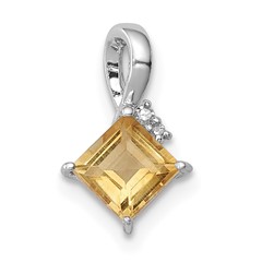 Sterling Silver Rhodium Plated Diamond and Citrine Pendant