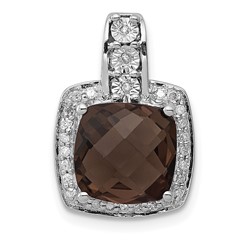 Sterling Silver Rhodium-plated Diamond Smoky Quartz Pendant