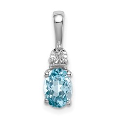 Sterling Silver Rhodium Diamond and Lght Sw. Blue Topaz Oval Pendant