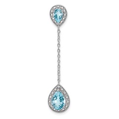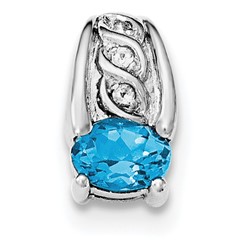 Sterling Silver Rhodium Swiss Blue Topaz and White Topaz Slide Pendant