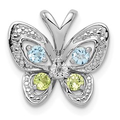 Sterling Silver Rhodium-plated Blue Topaz and Peridot and Diamond Pendant