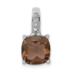 Sterling Silver Rhodium Smoky Quartz and Diamond Pendant
