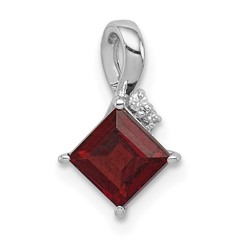 Sterling Silver Rhodium Plated Diamond and Garnet Square Pendant