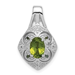 Sterling Silver Rhodium White/Green Diamond and Peridot Oval Pendant